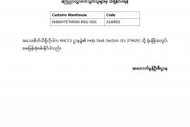 အကောက်ခွန်ဦးစီးဌာန၊ MACCS ဌာနခွဲ၏ ကြေညာချက်အမှတ် (၀၀၅/၂၀၂၆)