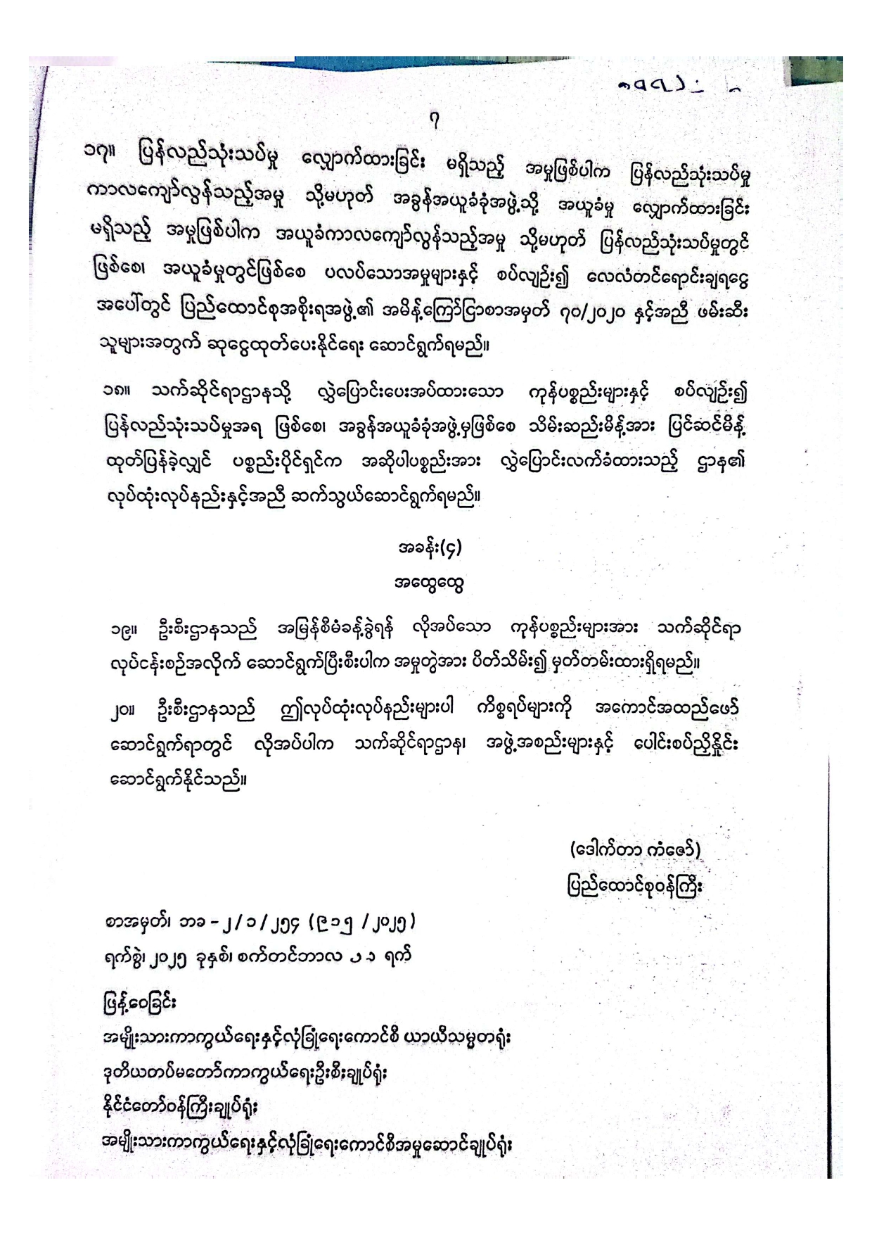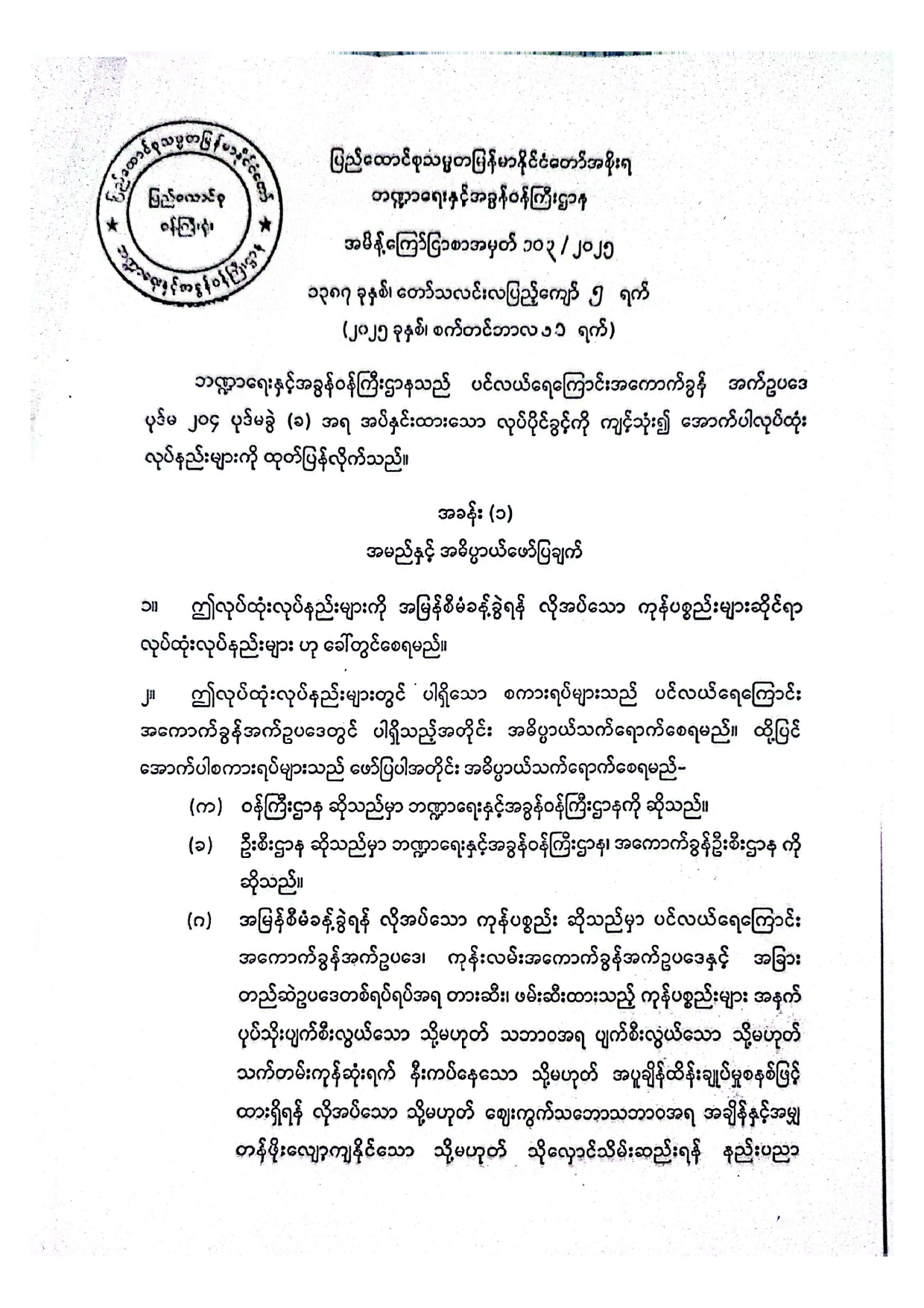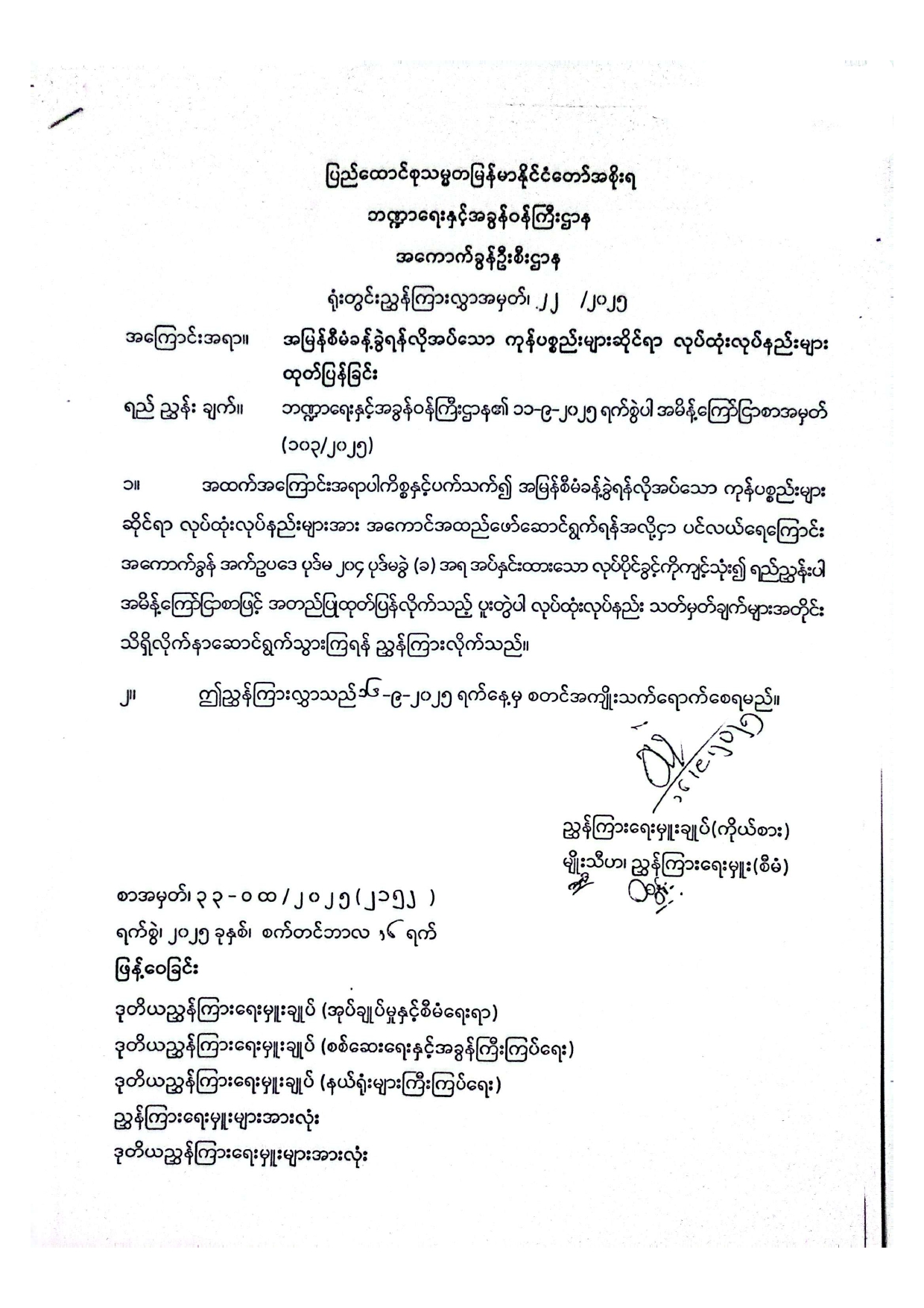 အမိန့်ကြော်ငြာစာအမှတ်(၁၀၃/၂၀၂၅)-အမြန်စီမံခန့်ခွဲရန် လိုအပ်သော ကုန်ပစ္စည်းများဆိုင်ရာ လုပ်ထုံးလုပ်နည်းများ
