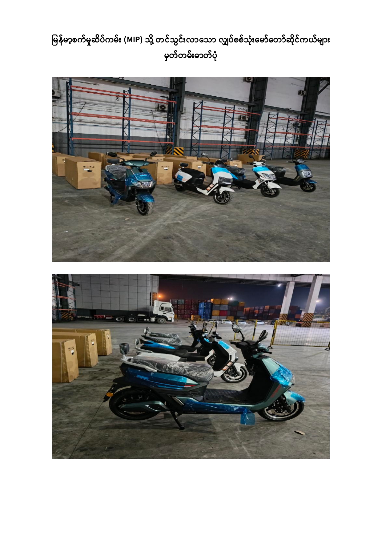 လျှပ်စစ်သုံးမော်တော်ဆိုင်ကယ်များ မြန်မာ့စက်မှုဆိပ်ကမ်း (MIP) သို့ ရောက်ရှိထုတ်ပေးခဲ့ခြင်း