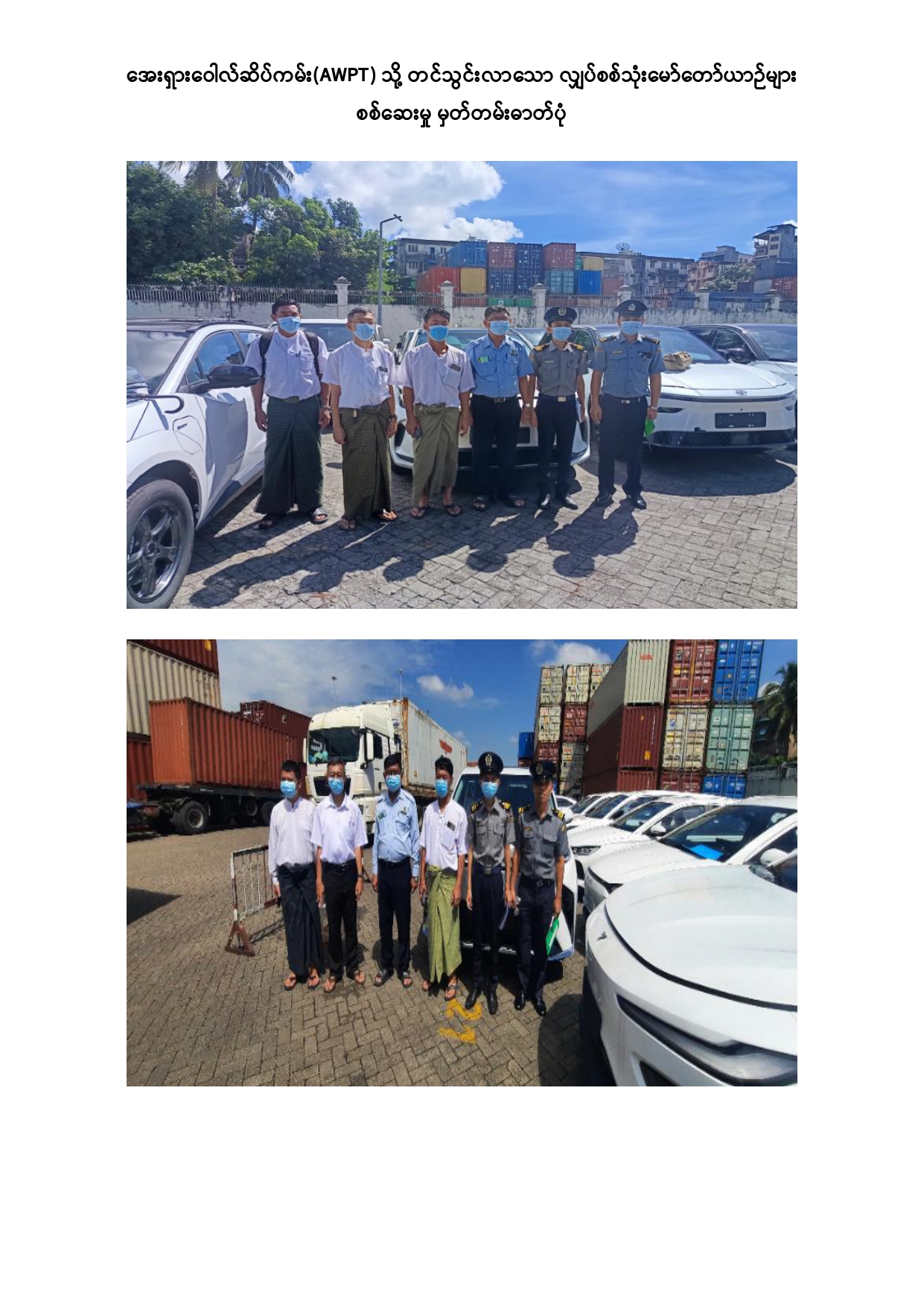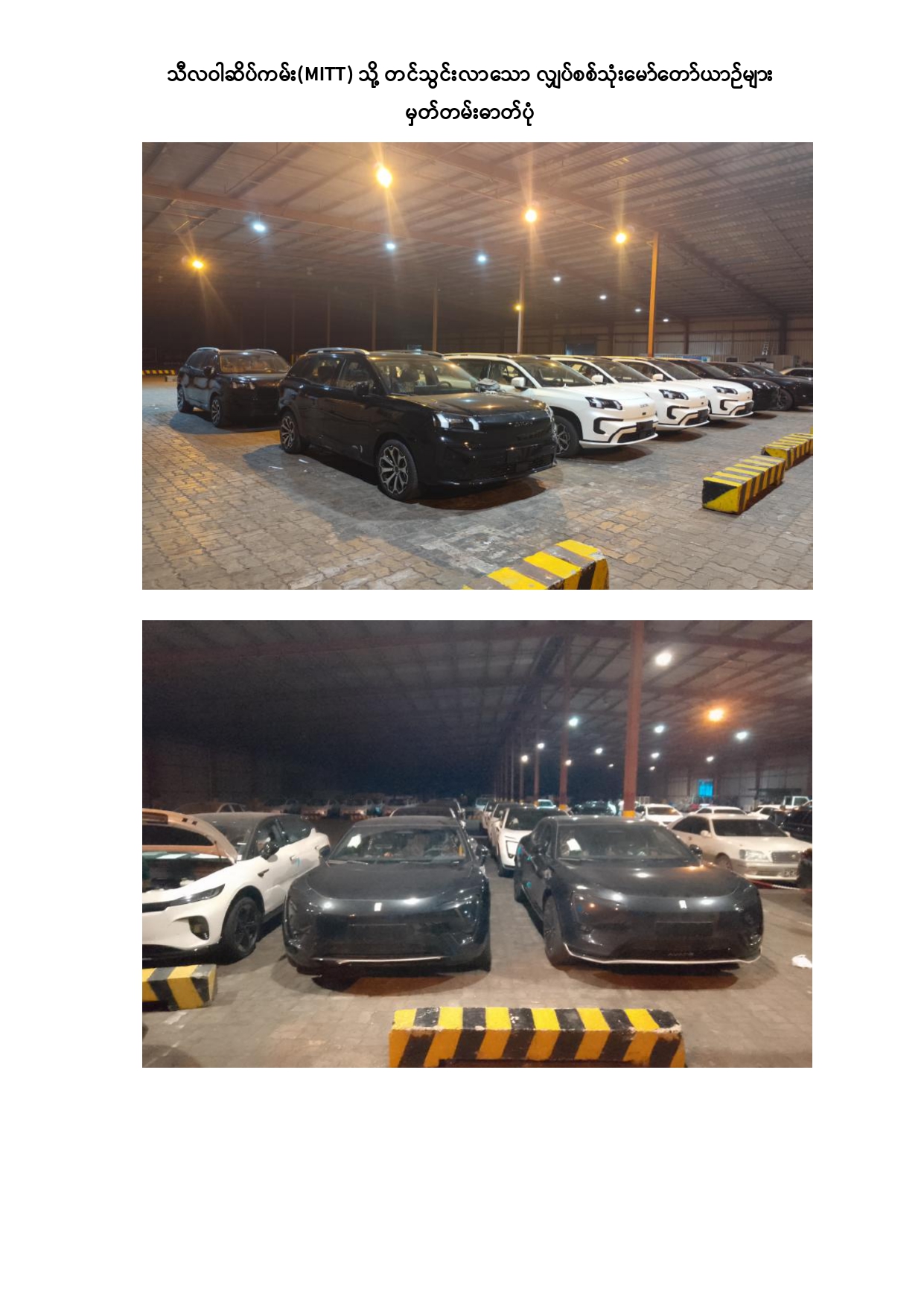 လျှပ်စစ်သုံးမော်တော်ယာဉ်များ သီလဝါဆိပ်ကမ်း (MITT) နှင့် အေးရှားဝေါလ်ဆိပ်ကမ်း(AWPT) သို့ ရောက်ရှိထုတ်ပေးခဲ့ခြင်း