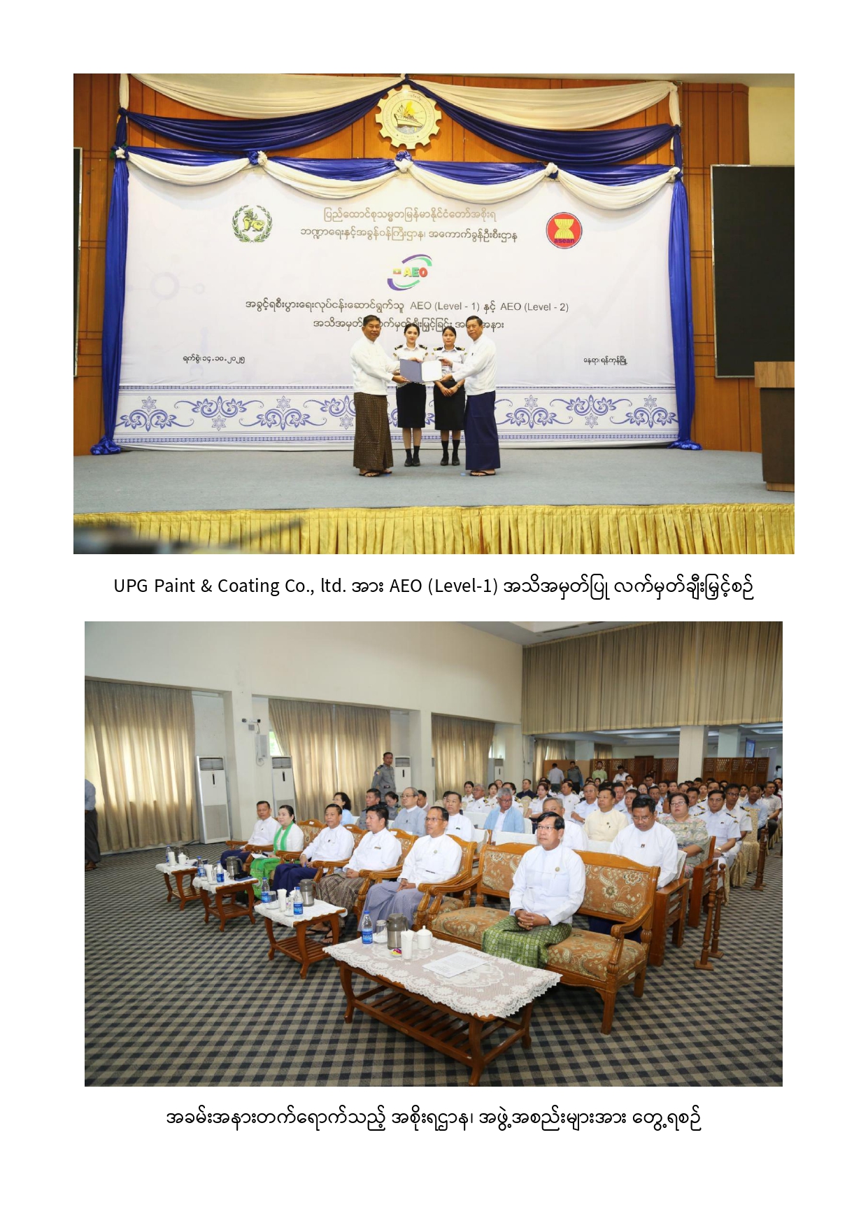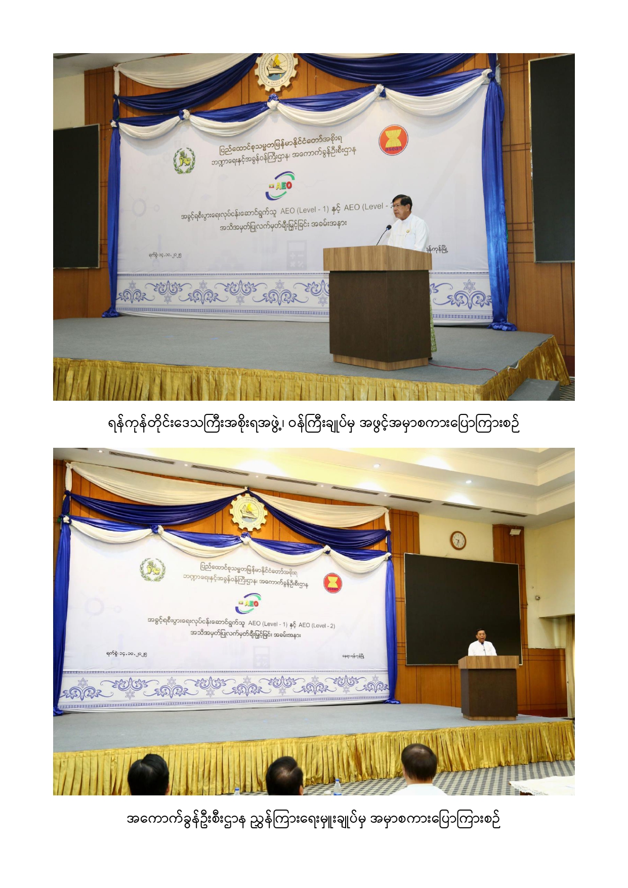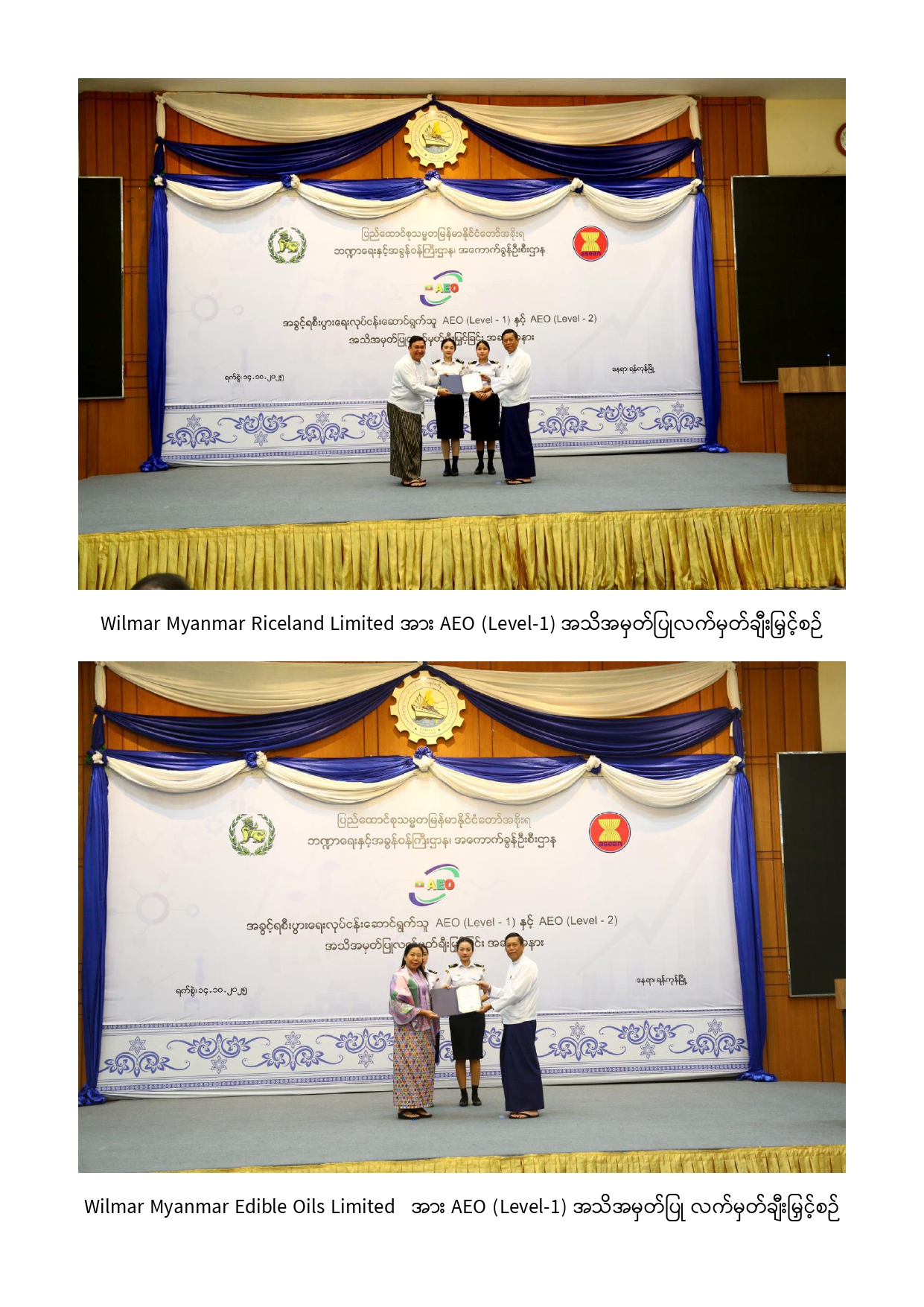 အခွင့်ရစီးပွားရေးလုပ်ငန်းဆောင်ရွက်သူ (Authorized Economic Operators – AEO)အသိအမှတ်ပြုလက်မှတ် ချီးမြှင့်ခြင်းအခမ်းအနားကျင်းပ