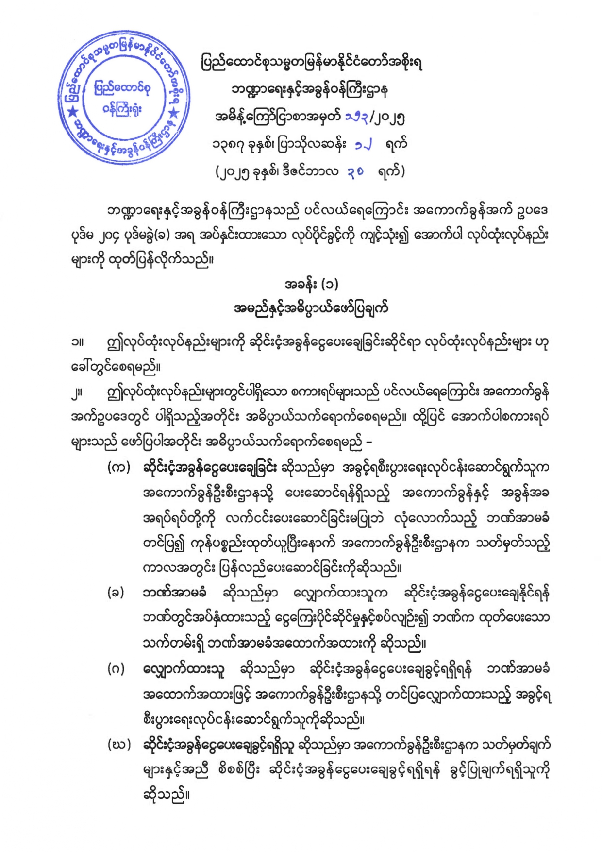 အမိန့်ကြော်ငြာစာအမှတ် (၁၅၃/၂၀၂၅) - ဆိုင်းငံ့အခွန်ငွေပေးချေခြင်းဆိုင်ရာ လုပ်ထုံးလုပ်နည်းများ