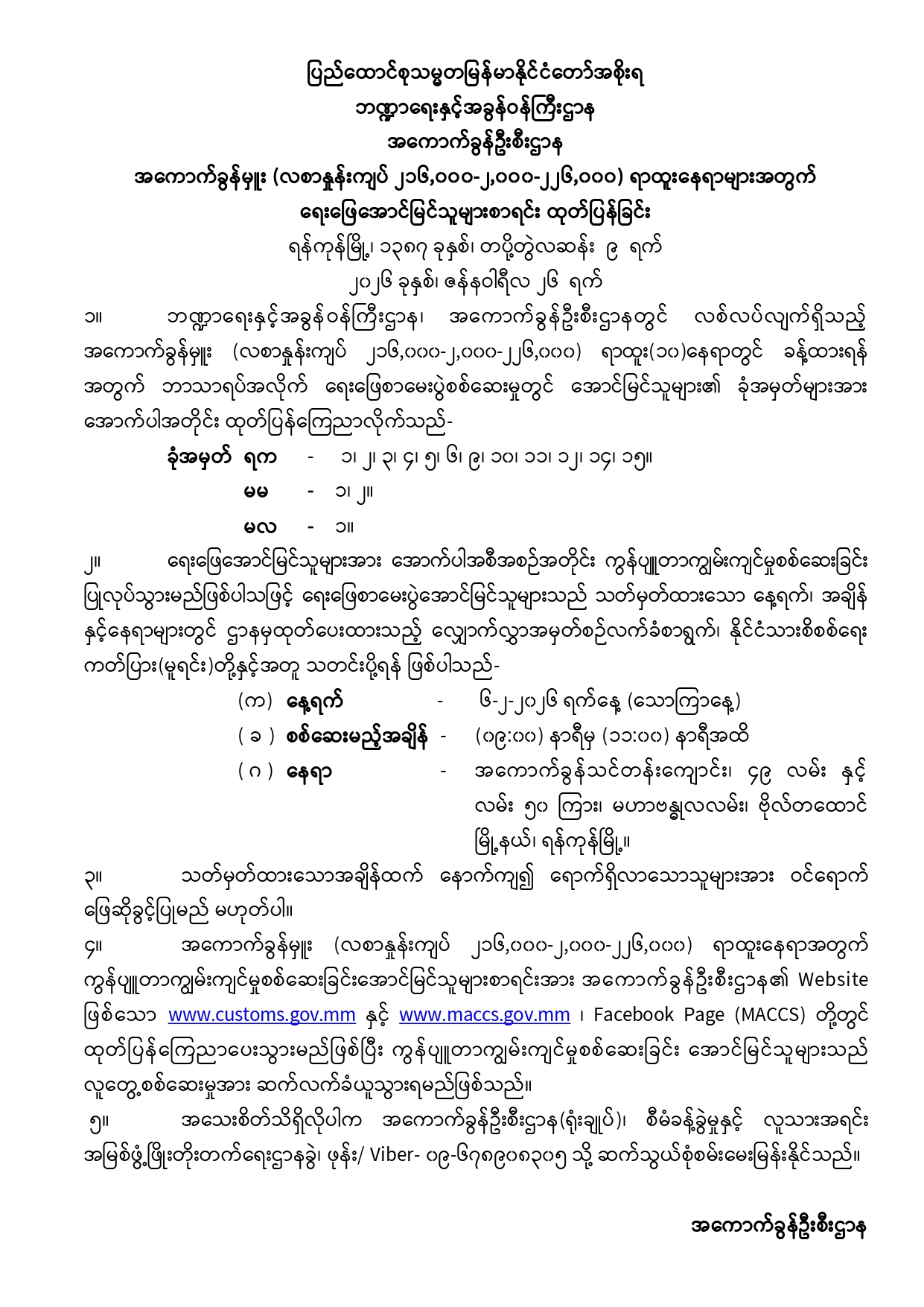 အကောက်ခွန်ဦးစီးဌာန၊ အကောက်ခွန်မှူးရာထူးနေရာများအတွက် ရေးဖြေအောင်မြင်သူများစာရင်းထုတ်ပြန်ခြင်း