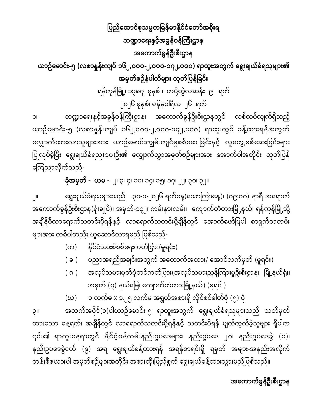 အကောက်ခွန်ဦးစီးဌာန၊ ယာဉ်မောင်း-၅ ရာထူးအတွက် ရွေးချယ်ခံရသူများ၏ အမှတ်စဉ်နံပါတ်များ ထုတ်ပြန်ခြင်း