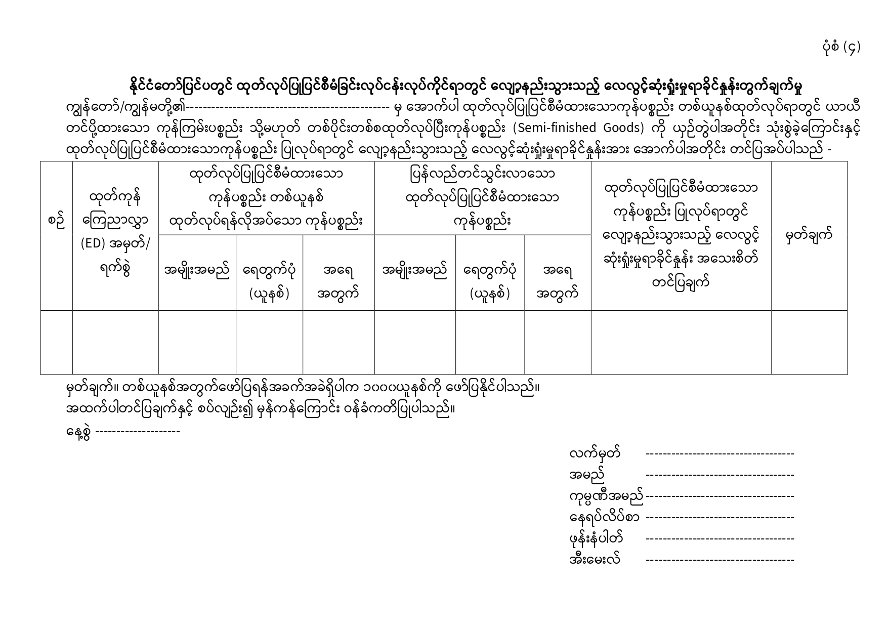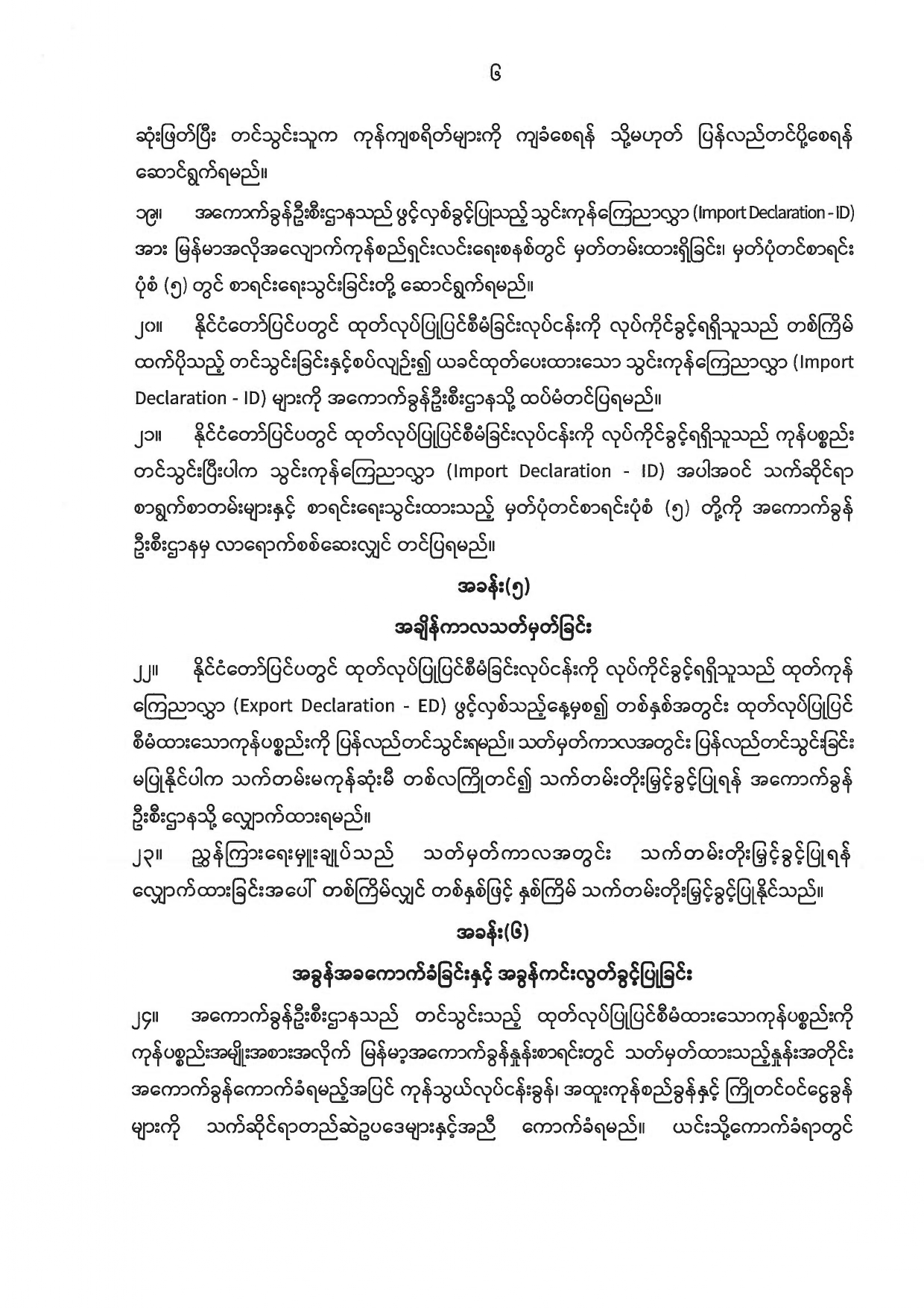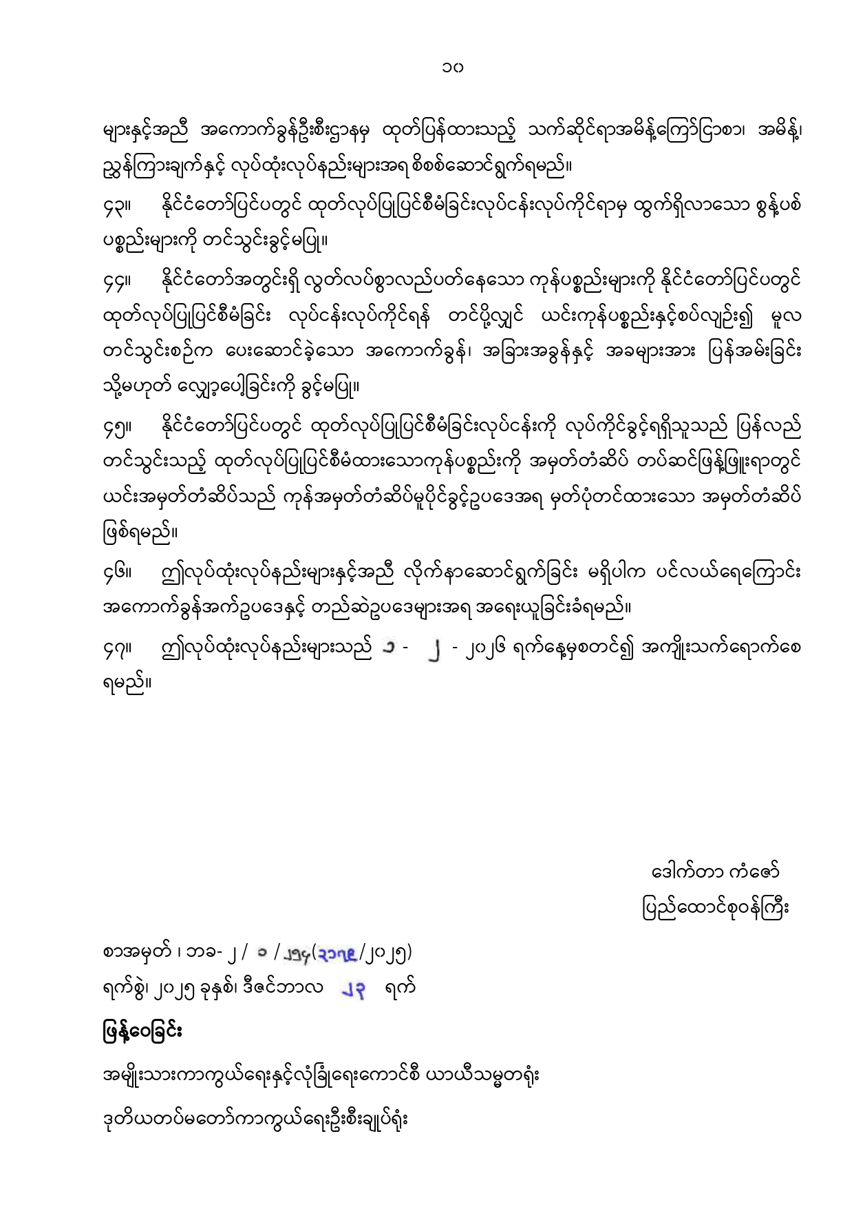 အမိန့်ကြော်ငြာစာအမှတ် (၁၄၃/၂၀၂၅) - နိုင်ငံတော်ပြင်ပတွင် ထုတ်လုပ်ပြုပြင်စီမံခြင်းလုပ်ငန်း(Outward Processing) ဆိုင်ရာလုပ်ထုံးလုပ်နည်းများ