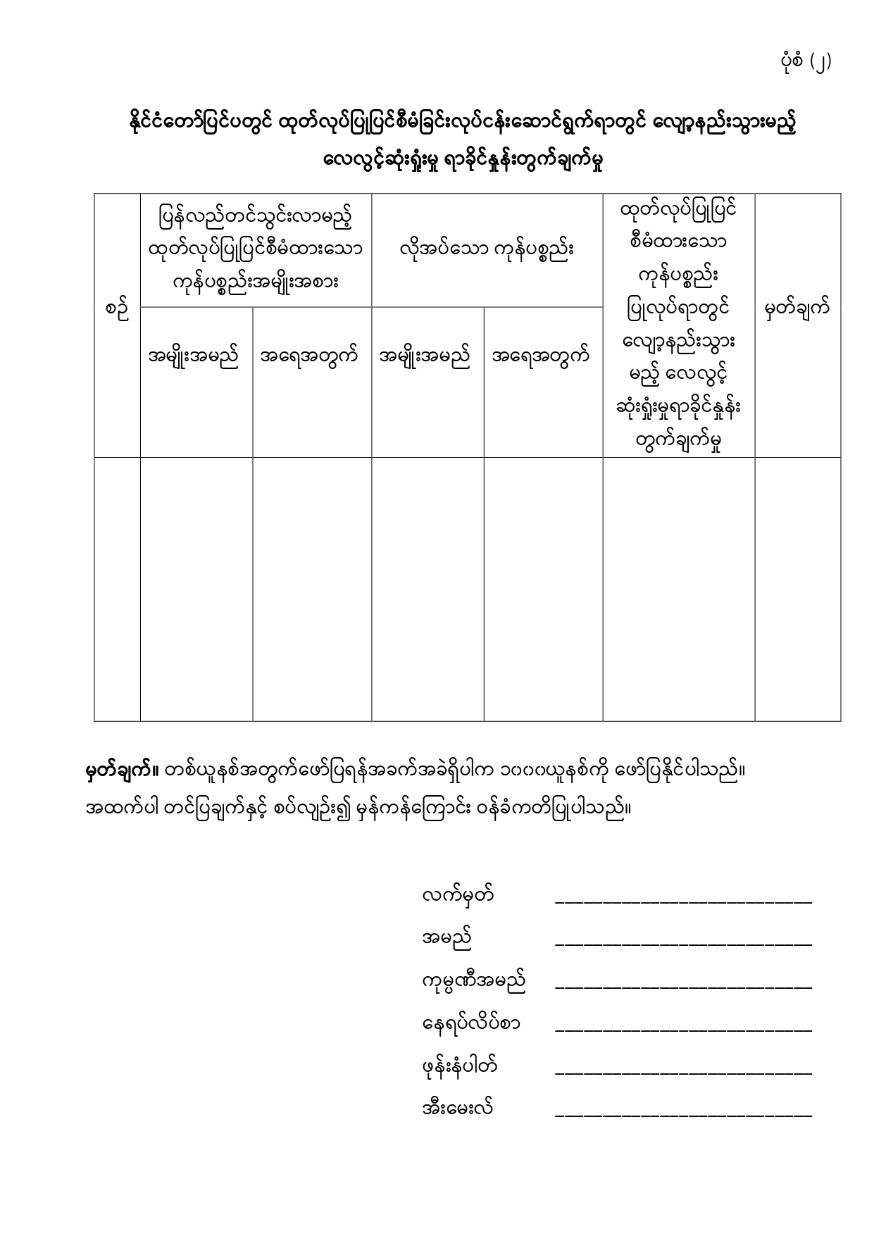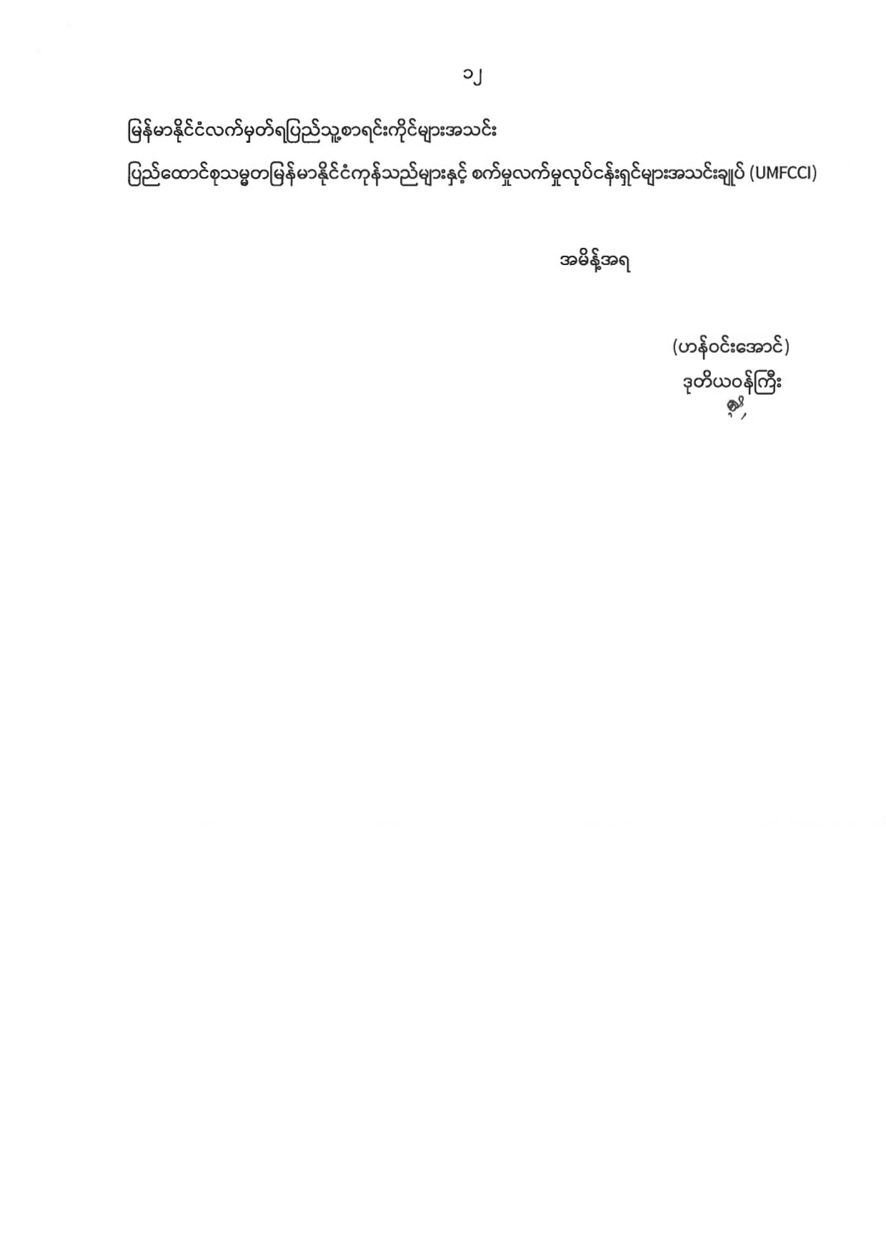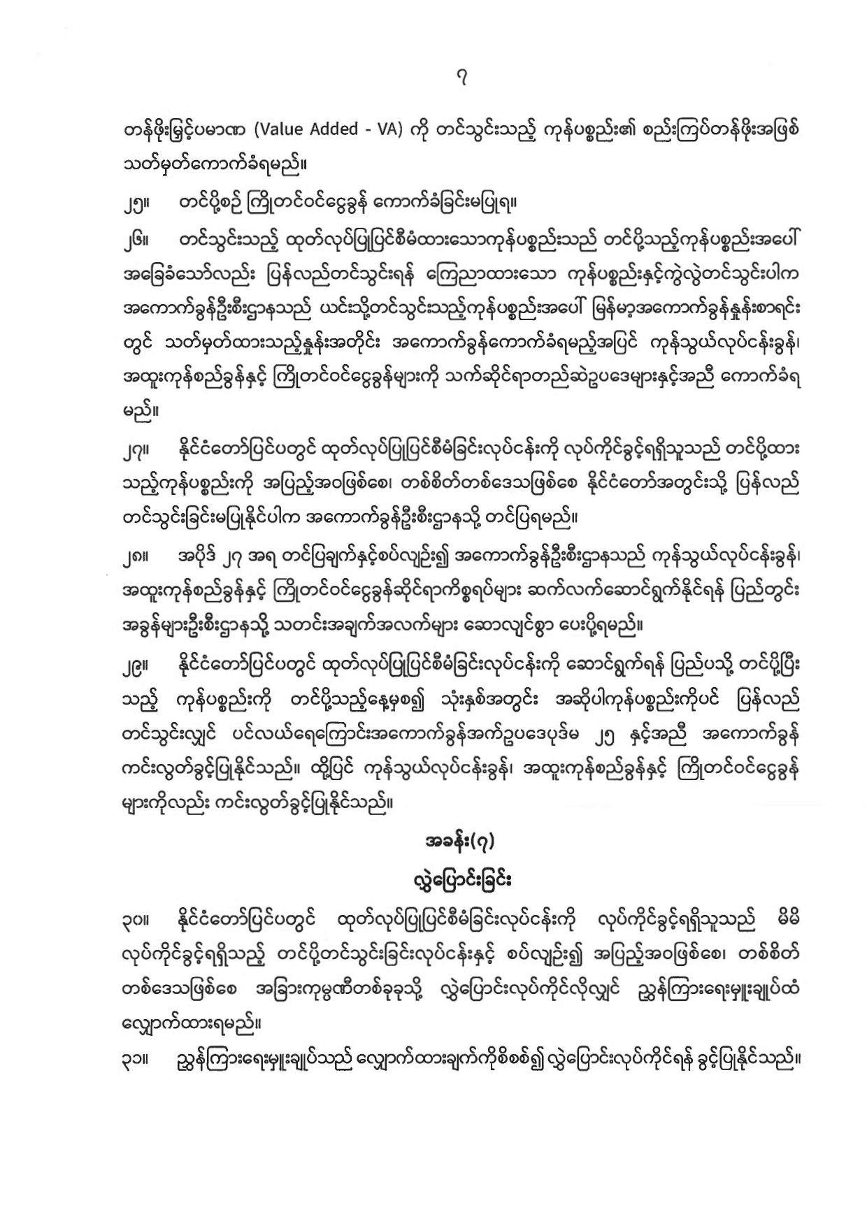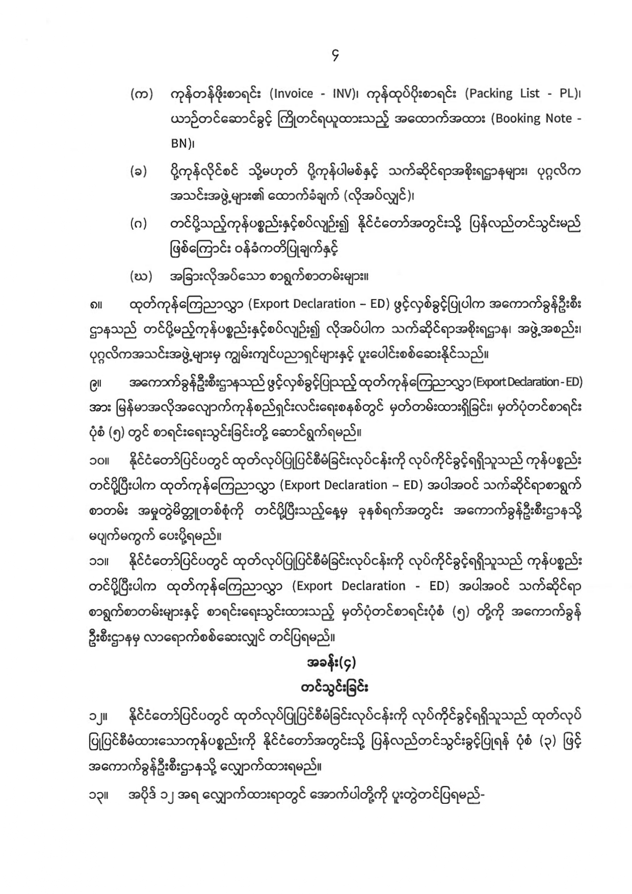 အမိန့်ကြော်ငြာစာအမှတ် (၁၄၃/၂၀၂၅) - နိုင်ငံတော်ပြင်ပတွင် ထုတ်လုပ်ပြုပြင်စီမံခြင်းလုပ်ငန်း(Outward Processing) ဆိုင်ရာလုပ်ထုံးလုပ်နည်းများ