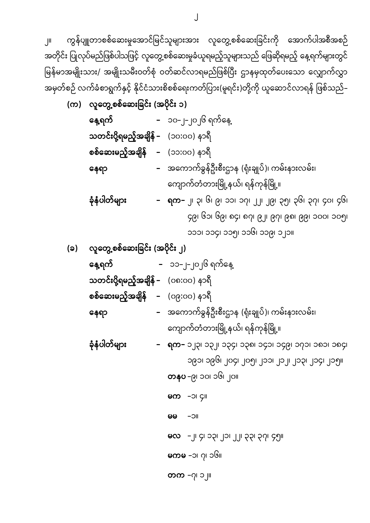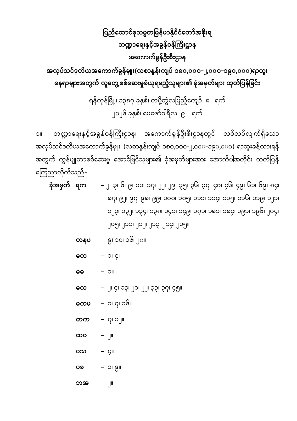 အကောက်ခွန်ဦးစီးဌာန၊ အလုပ်သင်-ဒုအကောက်ခွန်မှူး ရာထူးနေရာများအတွက် လူတွေ့စစ်ဆေးမှုခံယူရမည့်သူများ၏ ခုံအမှတ်များထုတ်ပြန်ခြင်း
