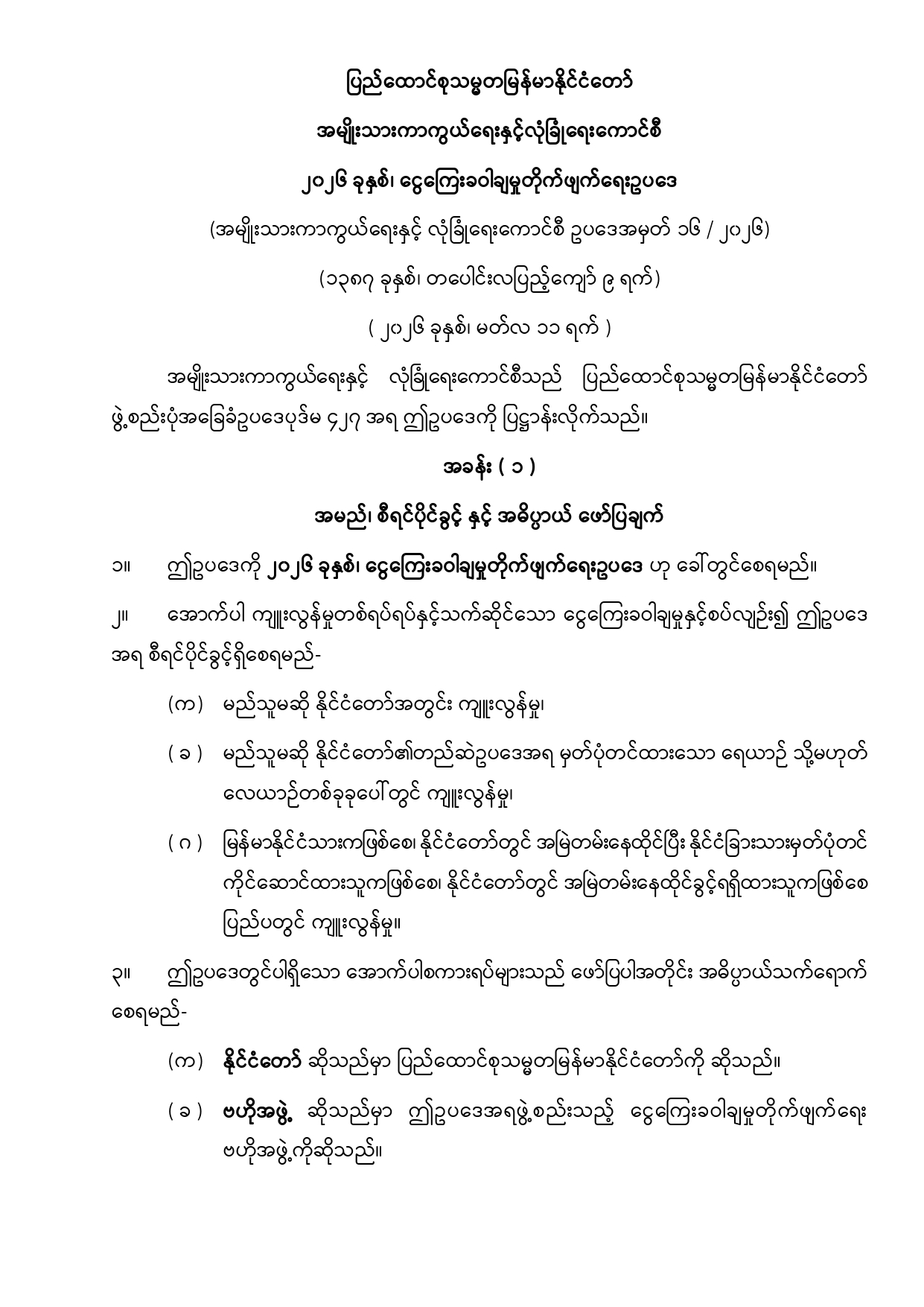 အမျိုးသားကာကွယ်ရေးနှင့်လုံခြုံရေးကောင်စီ ဥပဒေအမှတ် (၁၆/ ၂၀၂၆)၊ ၂၀၂၆ ခုနှစ် ငွေကြေးခဝါချမှုတိုက်ဖျက်ရေးဥပဒေ