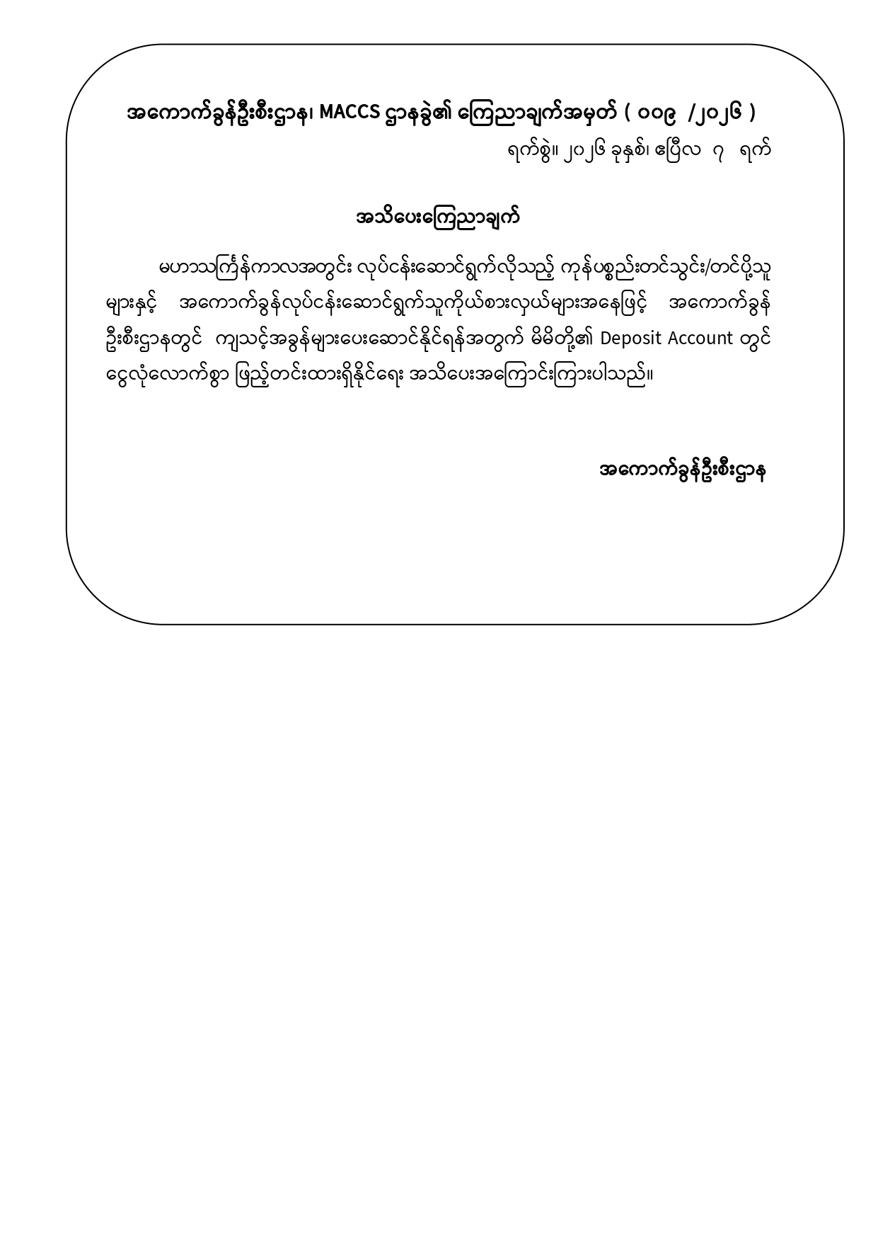 အကောက်ခွန်ဦးစီးဌာန၊ MACCS ဌာနခွဲ၏ ကြေညာချက်အမှတ် (၀၀၉/၂၀၂၆)