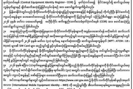 ဗဟိုမိုဘိုင်းစက်ပစ္စည်းသက်သေခံမှတ်ပုံတင်စနစ် (CEIR) စတင်အသုံးပြုဆောင်ရွက်မည့် အစီအစဉ်ကို ပြည်သူသို့အသိပေးကြေညာခြင်း