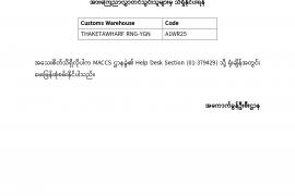 အကောက်ခွန်ဦးစီးဌာန၊ MACCS ဌာနခွဲ၏ ကြေညာချက်အမှတ် (၀၀၅/၂၀၂၆)