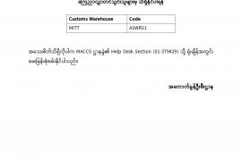 ရနောင်း-ရန်ကုန် General Cargo များအတွက် Import Declaration ကြေညာလွှာတွင် ဖြည့်စွက်ရမည့် MITT ဆိပ်ကမ်းတံတား၏ Customs Warehouse Code အား ကြေညာလွှာတင်သွင်းသူများမှ သိရှိနိုင်ပါရန်