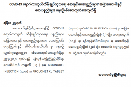 COVID-19 ရောဂါကာကွယ်ထိန်းချုပ် ကုသရေး ဆေးနှင့်ဆေးပစ္စည်းများ နေ့စဉ်စစ်ဆေး ထုတ်ပေး လျက်ရှိ