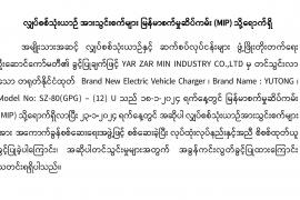 လျှပ်စစ်သုံးမော်တော်ယာဉ်များ မြန်မာ့စက်မှုဆိပ်ကမ်း (MIP) သို့ ရောက်ရှိထုတ်ပေးခဲ့ခြင်း