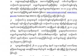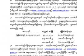 အကောက်ခွန်ဦးစီးဌာန၊ MACCS ဌာနခွဲ၏ကြေညာချက် (၀၁၂/ ၂၀၂၅)