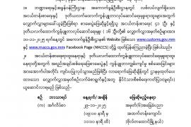 အကောက်ခွန်ထိန်းရာထူးအတွက် ရေးဖြေဖြေဆိုရမည့် နေ့ရက်နှင့်အချိန်တို့အား ထုတ်ပြန်ခြင်း