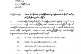 Trader ၏ ကိုယ်စားလှယ်/ Broker အဖြစ်ဆောင်ရွက်ရန် Company Letter Head ဖြင့် ကတိခံဝန်ချက်လျှောက်လွှာ
