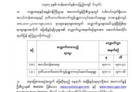 ၂၀၂၅-၂၀၂၆ ဘဏ္ဍာရေးနှစ်အတွက် အကောက်ခွန်ဦးစီးဌာန၊ ရန်ကုန် (ရုံးချုပ်) နှင့် မြို့နယ်ရုံးများတွင် အသုံးပြုရန် မီးသတ်ဆေးဘူး (၁) မျိုး၊ ရုံးသုံးစက်ပစ္စည်း (၄) မျိုး၊ ကွန်ပျူတာနှင့်ဆက်စပ်ပစ္စည်း (၈) မျိုး၊ ရုံးသုံးပရိဘောဂပစ္စည်း (၇) မျိုး ဝယ်ယူခြင်း၊ စုစုပေါင်းလုပ်ငန်း (၅) ခုတို့အတွက် တင်ဒါအောင်မြင်သည့် ကုမ္ပဏီများအား အသိပေးကြေညာခြင်း