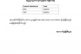 ရနောင်-ရန်ကုန် ကုန်ပစ္စည်းများအတွက် Without Cargo Information Import Declaration ကြေညာလွှာတွင် ဖြည့်စွက်ရမည့် MIP, Shwe Me ဆိပ်ကမ်းတံတားတို့၏ Customs Warehouse Code အား ကြေညာလွှာတင်သွင်းသူများမှ သိရှိနိုင်ရန်