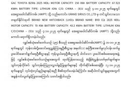 လျှပ်စစ်သုံးမော်တော်ယာဉ်များ မြန်မာ့စက်မှုဆိပ်ကမ်း (MIP) နှင့် သီလဝါဆိပ်ကမ်း (MITT) သို့ ရောက်ရှိထုတ်ပေးခဲ့ခြင်း