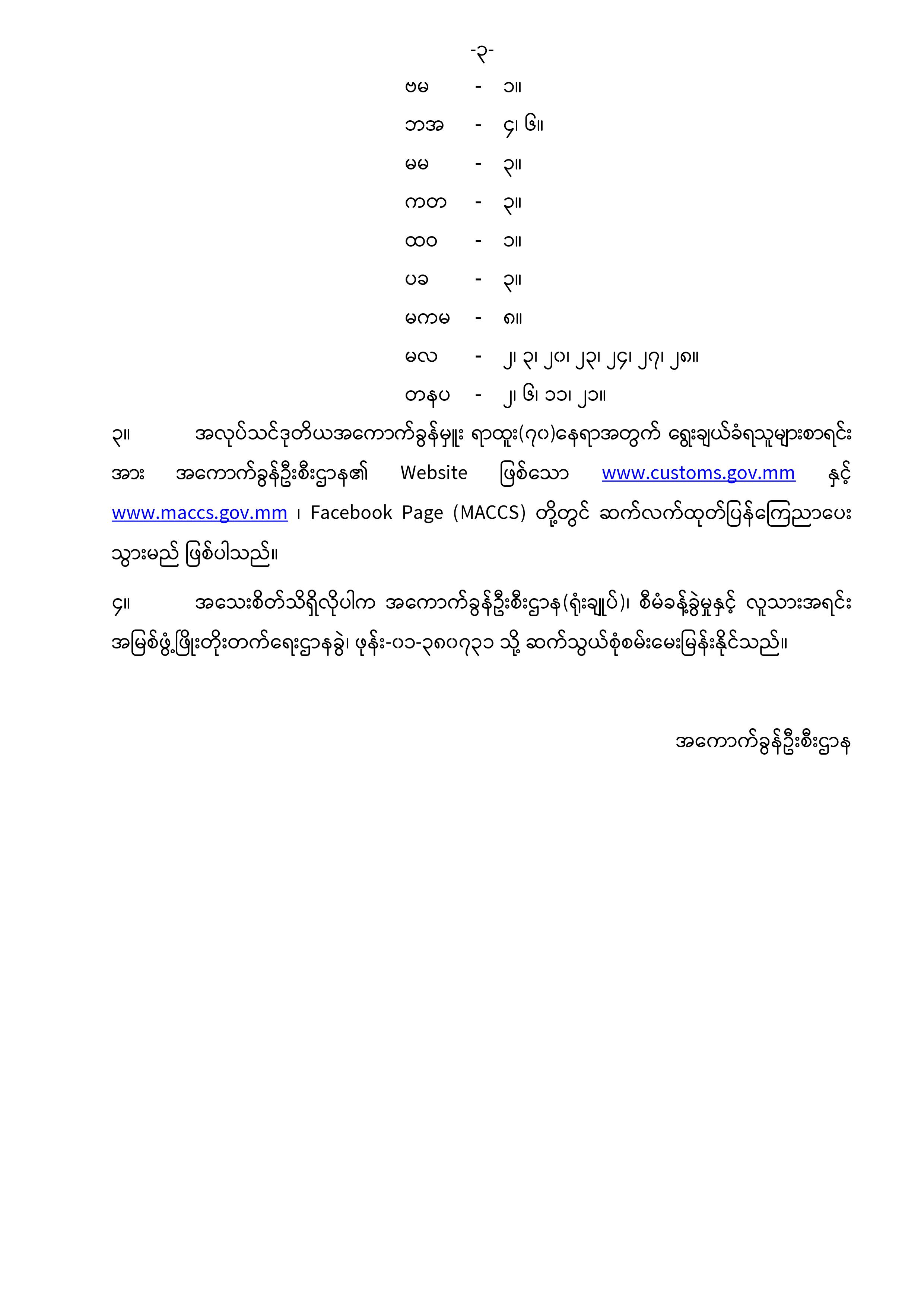 အလုပ်သင်ဒုတိယအကောက်ခွန်မှူးရာထူးအတွက် လူတွေ့စစ်ဆေးမှုခံယူရမည့်သူများ၏ ခုံနံပါတ်များထုတ်ပြန်ခြင်း