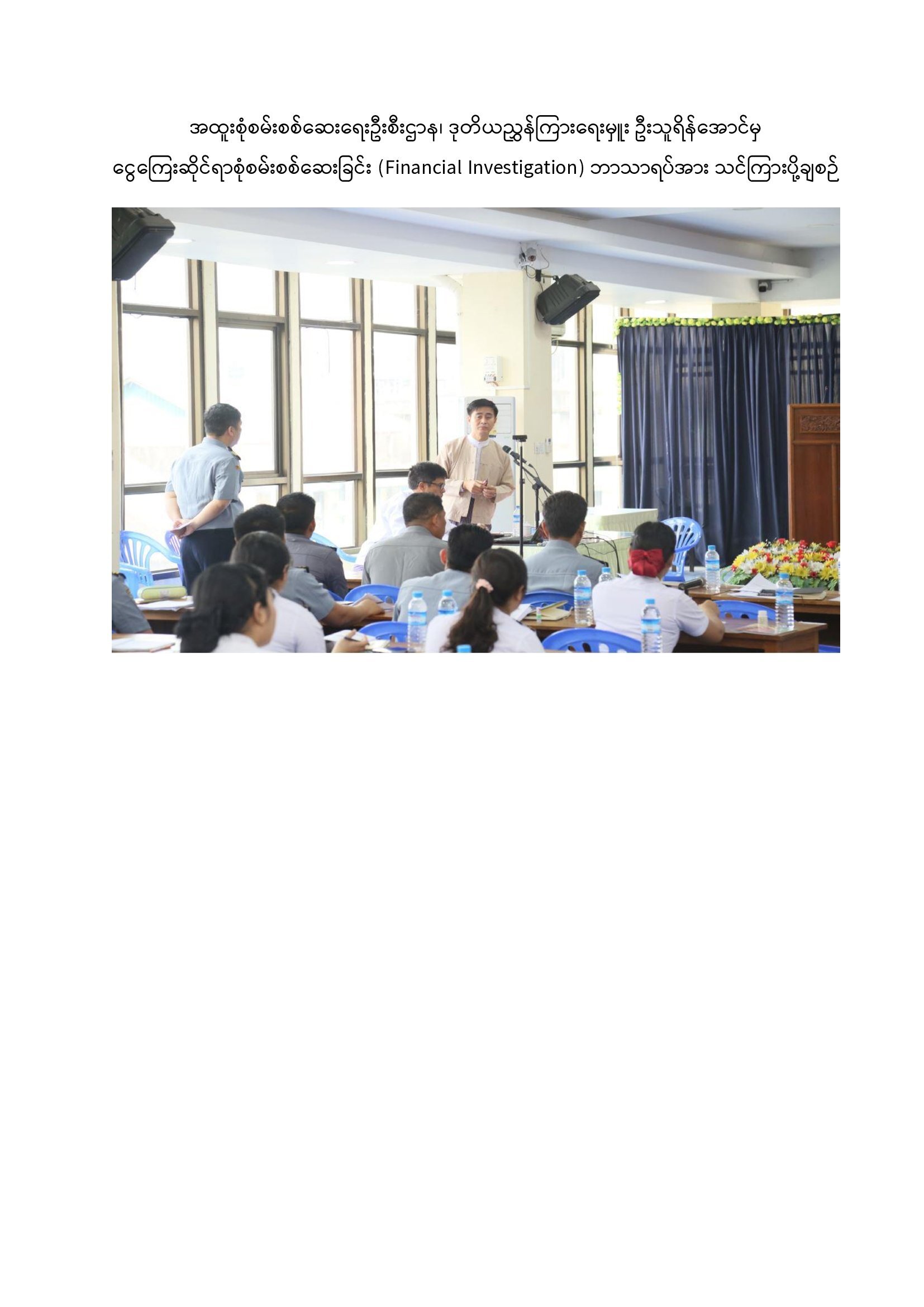 အကောက်ခွန်အရာရှိများအား ငွေကြေးခဝါချမှုတိုက်ဖျက်ရေး အသိပညာပေး သင်တန်းပို့ချခြင်း
