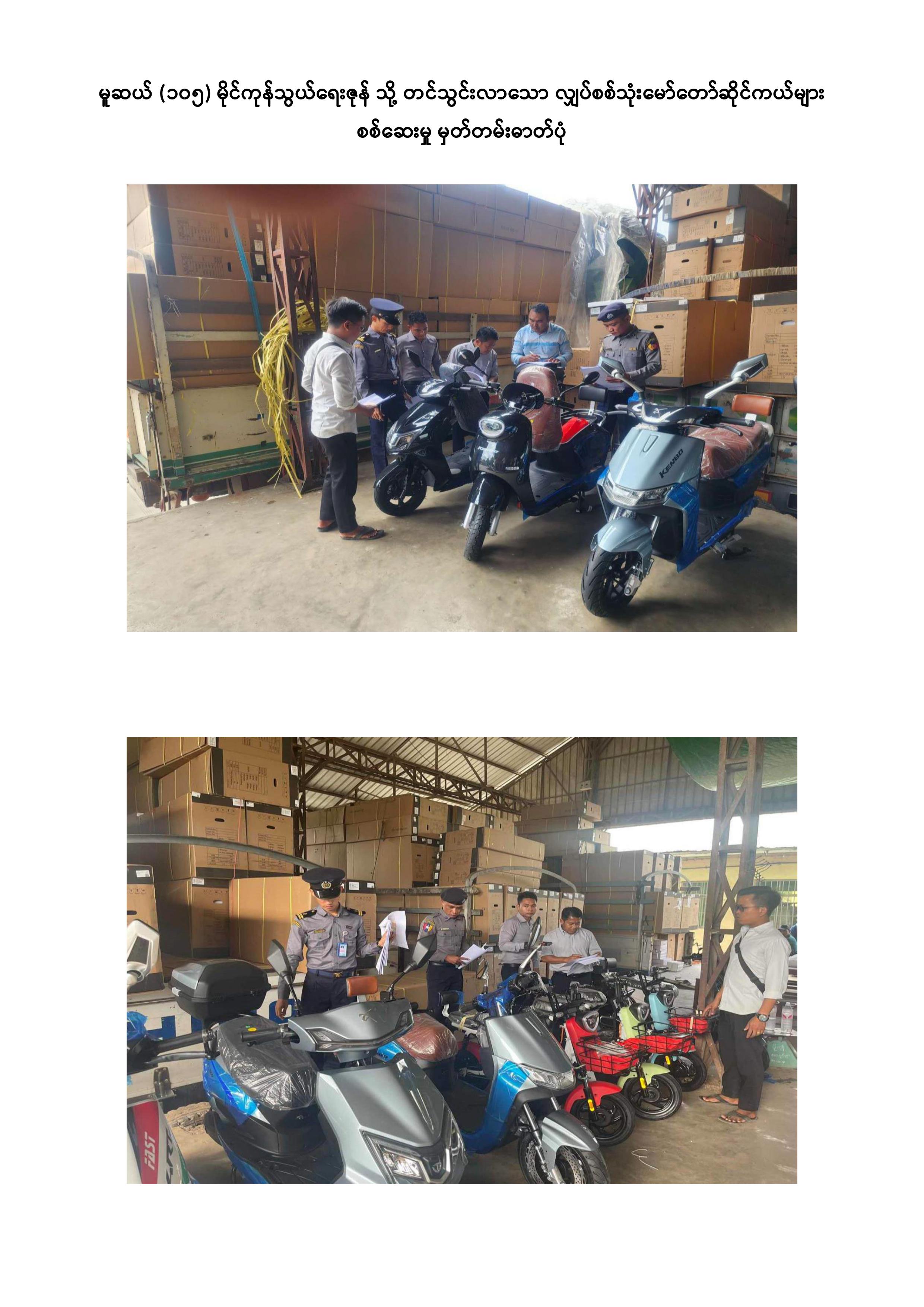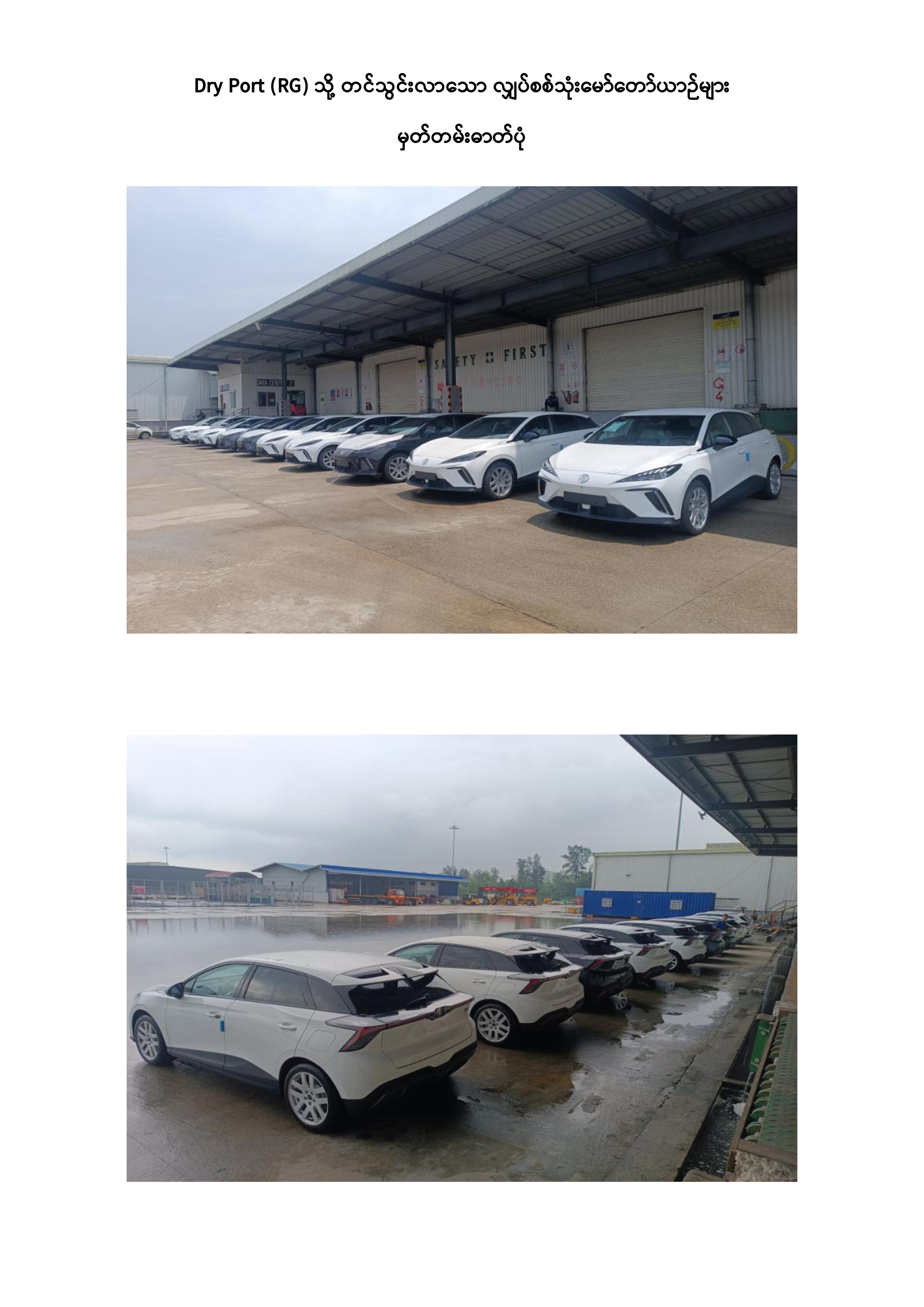 လျှပ်စစ်သုံးမော်တော်ယာဉ်များ၊ လျှပ်စစ်သုံးမော်တော်ဆိုင်ကယ်များ Dry Port (RG) နှင့် မူဆယ်(၁၀၅)မိုင်ကုန်သွယ်ရေးဇုန်များသို့ ရောက်ရှိထုတ်ပေးခဲ့ခြင်း