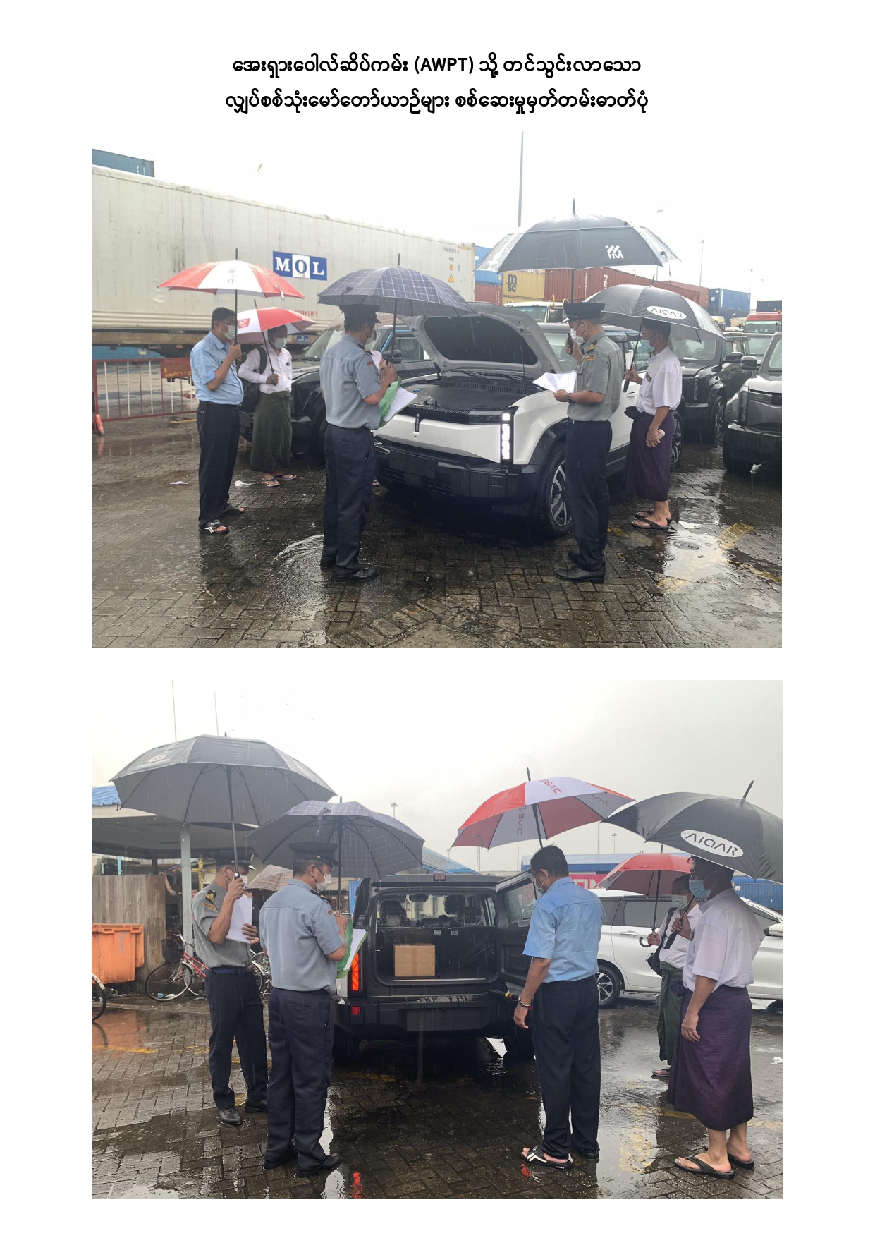 လျှပ်စစ်သုံးမော်တော်ယာဉ်များ ရွာသာကြီးကုန်းတွင်းဆိပ်ကမ်း (Dry Port – KM) နှင့် အေးရှားဝေါလ်ဆိပ်ကမ်း (AWPT) သို့ရောက်ရှိထုတ်ပေးခဲ့ခြင်း