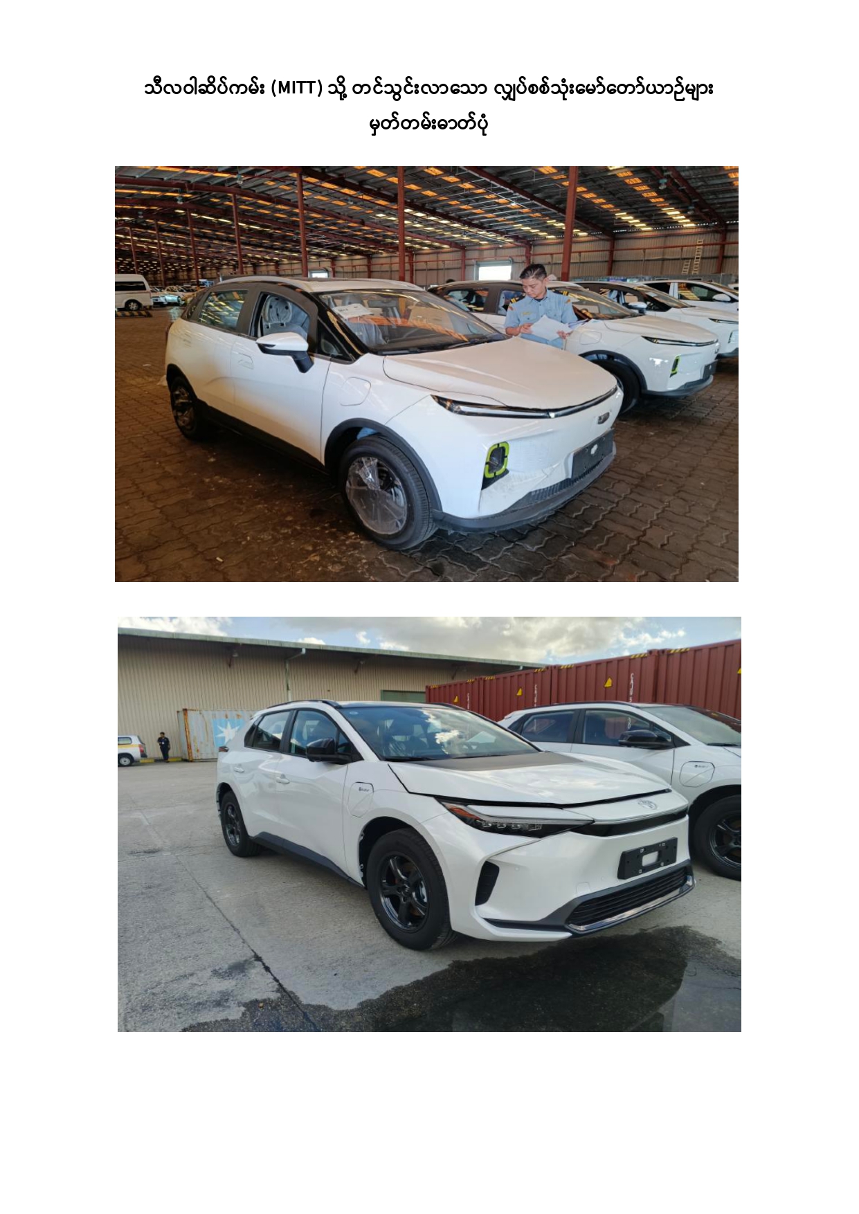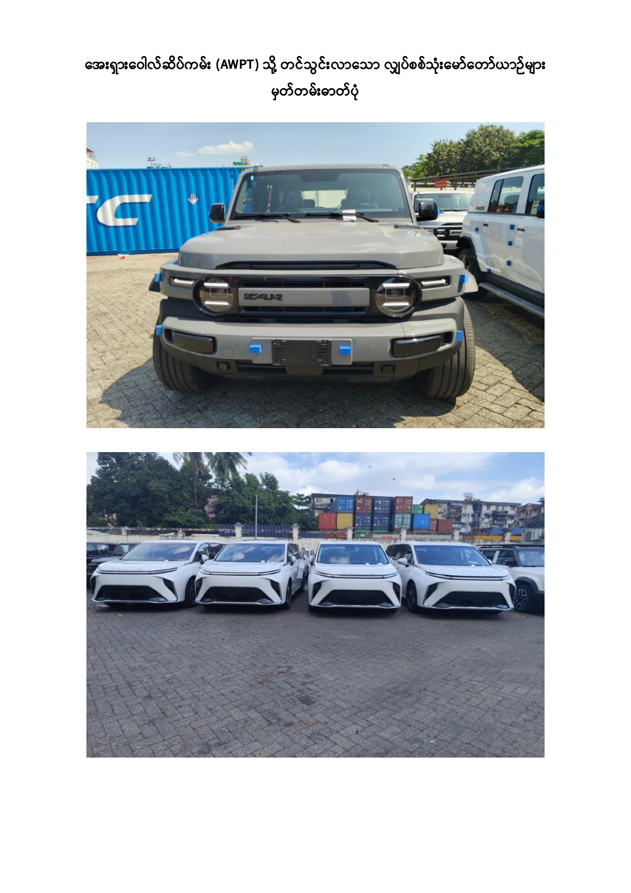 လျှပ်စစ်သုံးမော်တော်ယာဉ်များ အေးရှားဝေါလ်ဆိပ်ကမ်း (AWPT) နှင့် သီလဝါဆိပ်ကမ်း (MITT) သို့ရောက်ရှိထုတ်ပေးခဲ့ခြင်း