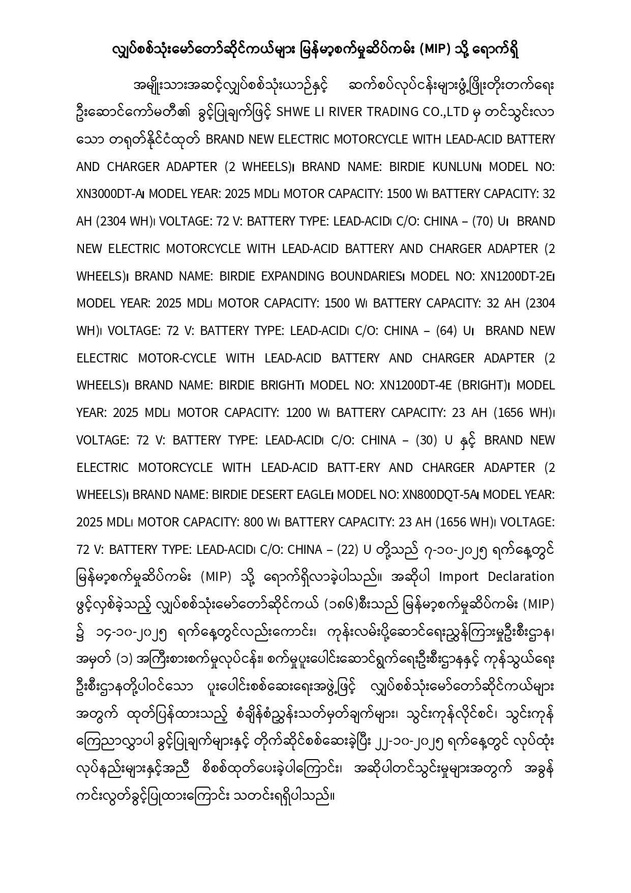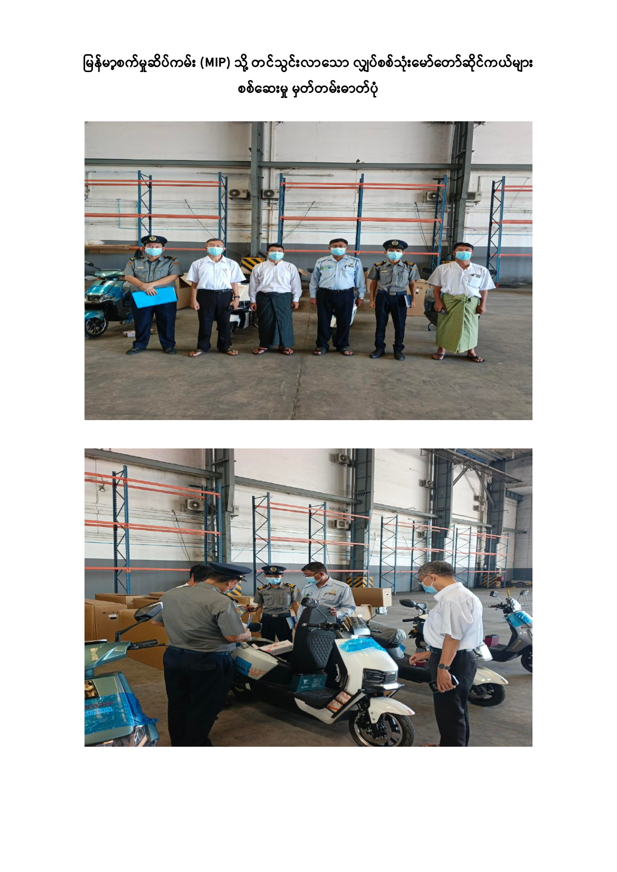 လျှပ်စစ်သုံးမော်တော်ဆိုင်ကယ်များ မြန်မာ့စက်မှုဆိပ်ကမ်း (MIP) သို့ ရောက်ရှိထုတ်ပေးခဲ့ခြင်း