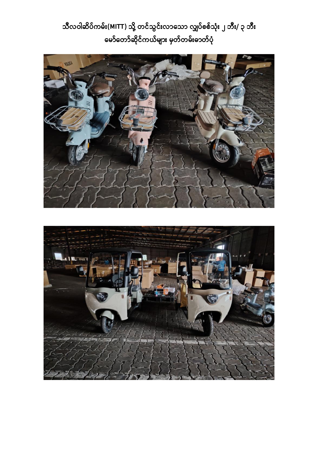 လျှပ်စစ်သုံးမော်တော်ယာဉ်များ နှင့် လျှပ်စစ်သုံး ၂ ဘီး/ ၃ ဘီးမော်တော်ဆိုင်ကယ်များ သီလဝါဆိပ်ကမ်း(MITT) သို့ ရောက်ရှိထုတ်ပေးခဲ့ခြင်း