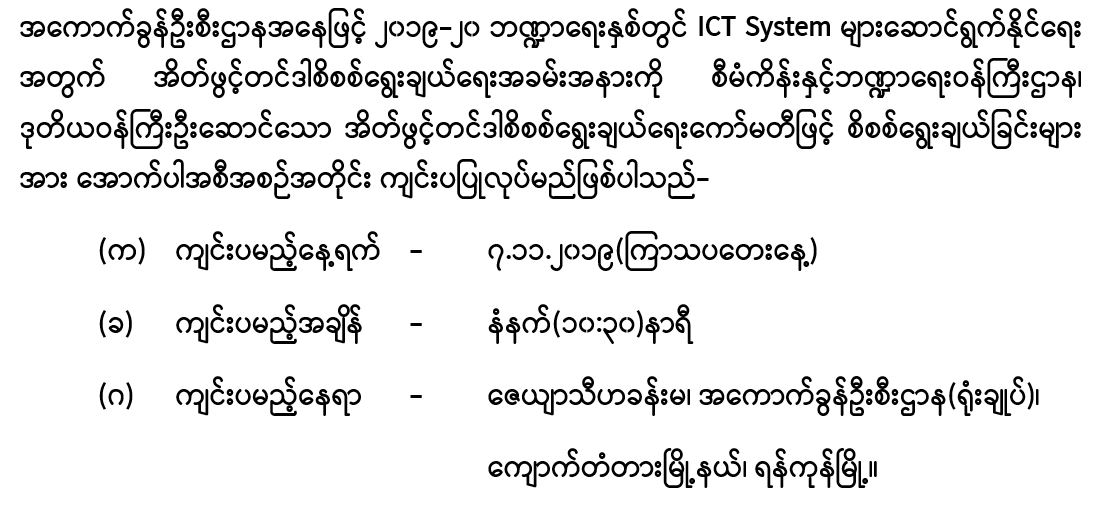အိတ်ဖွင့်တင်ဒါစိစစ်ရွေးချယ်ရေးအခမ်းအနား